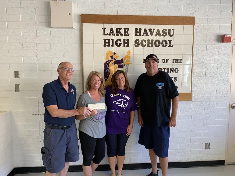 This week Havasu Deuces board members, Joe Mitchell and Don Schulz made a donation to the Lake Havasu High School cheer program. The funds donated will be used to purchase 25 brand new cheer uniforms, of which should last the program the next 5 years.